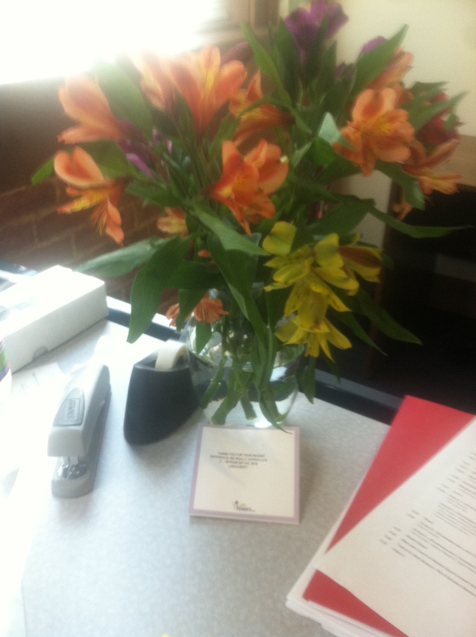 Walking into the office this morning brought a smile to my face as beautiful flowers were sitting on my desk. Not only was I smiling because of how pretty the flowers look, but also because these flowers represented that the work we do here at the World Trade Center of Central PA does not go unnoticed. The flowers were from WTC member MTM Linguasoft for all the clients we have refered to them. We just want to say “thank you” for the token of appreciation that was sent to our offices!