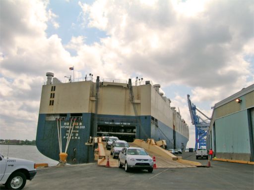 The Ports of the Delaware River shipped over 80 million tons of freight in 2009, making them one of America’s Top 10 Port Complexes. We saw the marine terminals that move containers, steel, forest products, fruit and cocoa. We also saw the giant cranes and container moving equipment, the portable x-ray machines used for scanning full containers and the facilities for keeping refrigerated and freezer containers. August was a busy month at the Packer Avenue Marine Terminal, as it marked the arrival of 7 HYUNDAI/KIA vessels, who together delivered more than 17,000 Hyundai and Kia vehicles to the Port of Philadelphia.