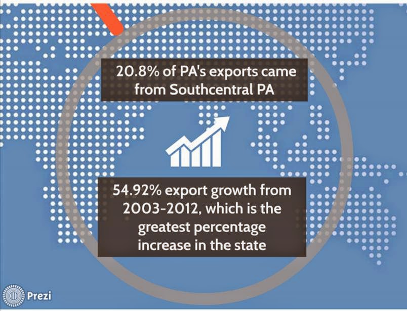 Have you ever wondered how much is really exported from the southcentral PA region? Actually, it is quite a lot – over $14.4 billion worth of products and services were exported from the 8 counties in our region during 2012!