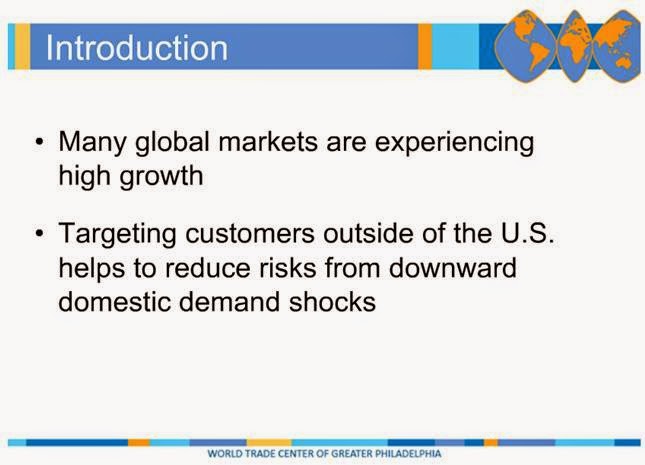 At the federal level, the US Export Assistance Center, under the US Department of Commerce (USDOC) will help you reach international markets. Locally, the closest US Export Assistance Center to our region is in Philadelphia. They offer international sales and marketing assistance, logistics insight, and financing recommendations. Their website contains a wealth of information on foreign markets and technical aspects of global trade.