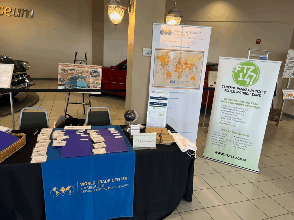 On September 10, BusinessPA and World Trade Center Harrisburg hosted Bringing the World to Pennsylvania at the AACA Museum in Hershey. The annual event was one of ten stops held across the state from September 8–19, which connects local companies with the state’s network of Authorized Trade Representatives (ATRs) around the world. These ATRs work alongside Pennsylvania’s Regional Export Network (REN), which exists as PA’s in-state network of trade experts across 10 geographic regions, one of which is served by World Trade Center Harrisburg. Covering 44 countries worldwide, these 13 ATRs serve as Pennsylvania’s in-country experts, providing on-the-ground insight into market conditions, regulatory requirements, cultural considerations, and opportunities for companies looking to expand abroad. Their visit to Pennsylvania each fall gives businesses across the state the unique chance to meet face-to-face with these international trade professionals without leaving their home regions, making global expansion and investment from abroad possible and accessible to companies of all sizes.