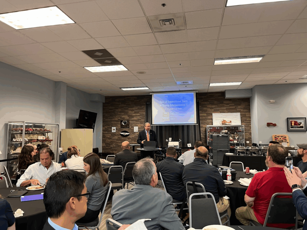 The keynote address was delivered by David L. Cohen, who served as the U.S. ambassador to Canada during the Biden administration. Cohen’s speech was entitled “State of International Trade in Trump Administration Ⅱ” and shared both his experience working as U.S. ambassador to Canada and his insights regarding the current policy environment in the nation and their impacts on both the United States’ relationship with Canada and on its economy as a whole. He discussed the multifaceted role ambassadors play in managing geopolitical relationships and detailed Trump’s tariff announcements and their potential economic impacts, in addition to sharing how tariffs combined with spending cuts and tax hikes constitute the largest redistribution of wealth in American history. In spite of changes in priorities and policies between administrations, Cohen reiterated that what remains constant is Canada’s close economic ties with the United States, and more specifically, Pennsylvania.