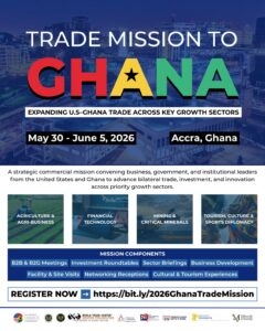 The US–Ghana Chamber of Commerce, in collaboration with regional and international partners, invites Philadelphia and Pennsylvania business leaders to participate in a high-level Trade Mission to Accra, Ghana from May 30 – June 5, 2026.