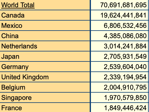 USA Fact Sheet: https://trade.gov/sites/default/files/2025-01/SUSA%20-%20United%20States%20Fact%20Sheet_2024_2.pdf?_gl=1*r153tj*_ga*MjAxODY2NTU1Ni4xNzQ3MjMxMTY1*_ga_L884J52XQ5*czE3NDkwNDY4NzUkbzEzJGcwJHQxNzQ5MDQ2ODc3JGo1OCRsMCRoMA..*_ga_6D3N6M4S6H*czE3NDkwNDY4NzUkbzEzJGcwJHQxNzQ5MDQ2ODc1JGo2MCRsMCRoMA..USA Data: https://www.bea.gov/data/intl-trade-investment/international-transactions
